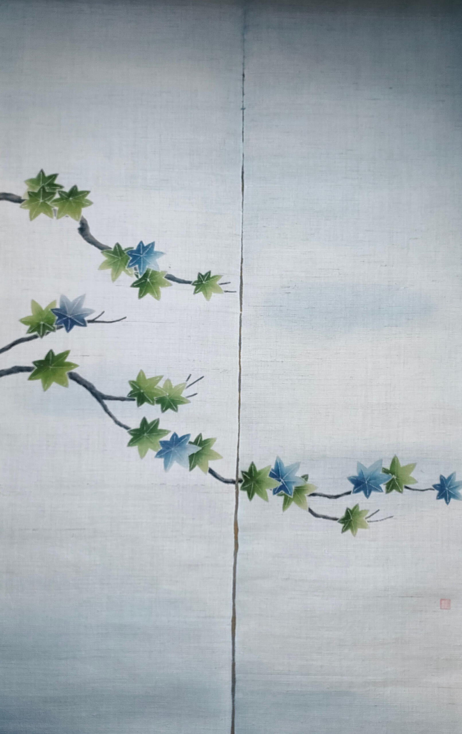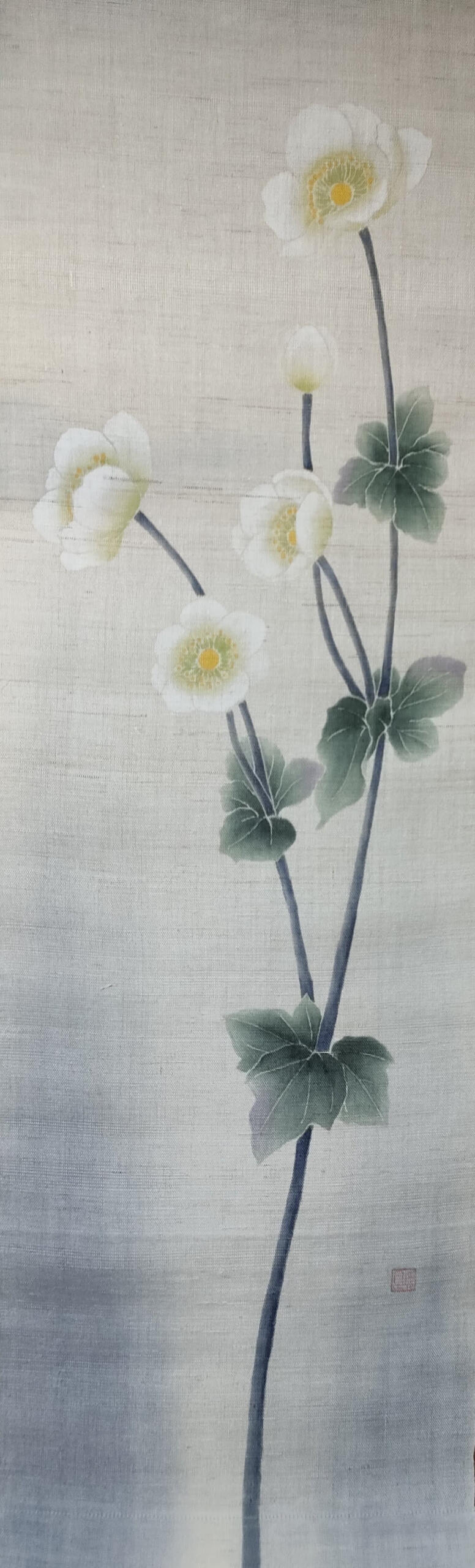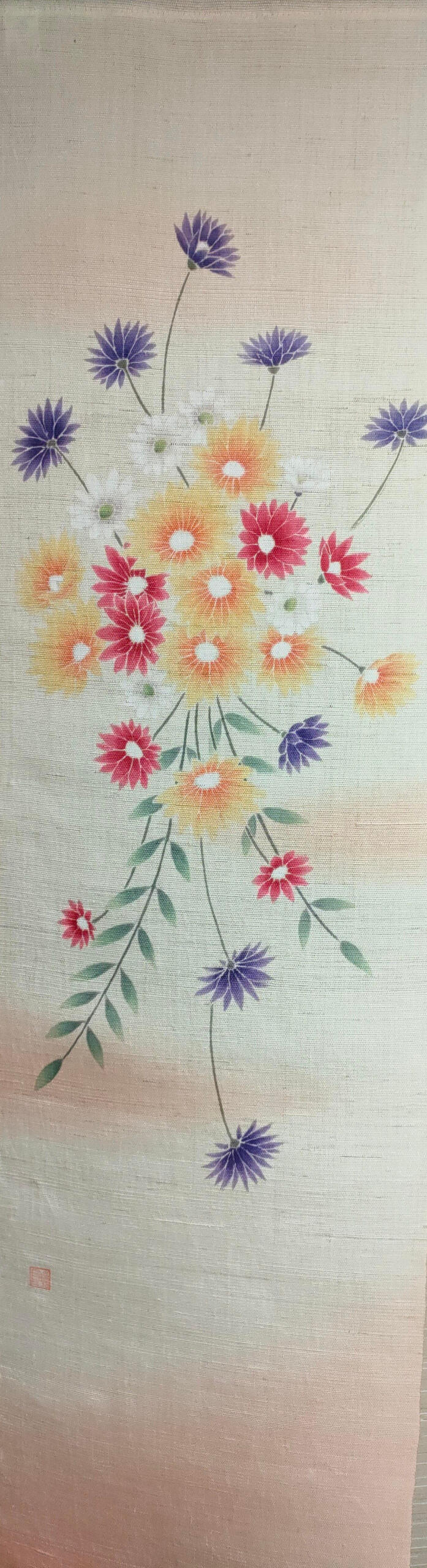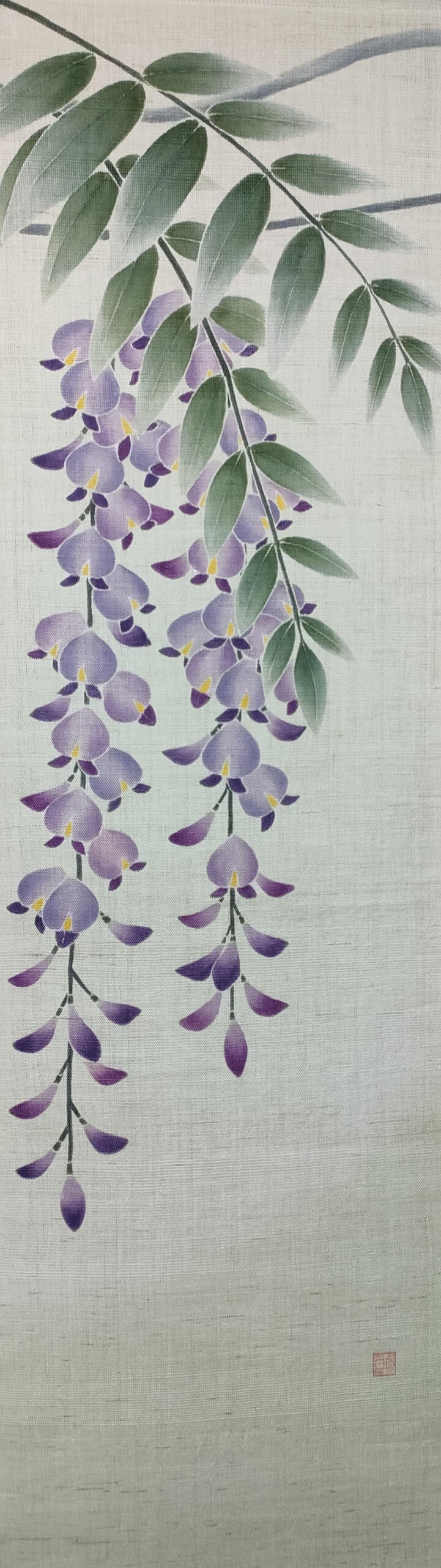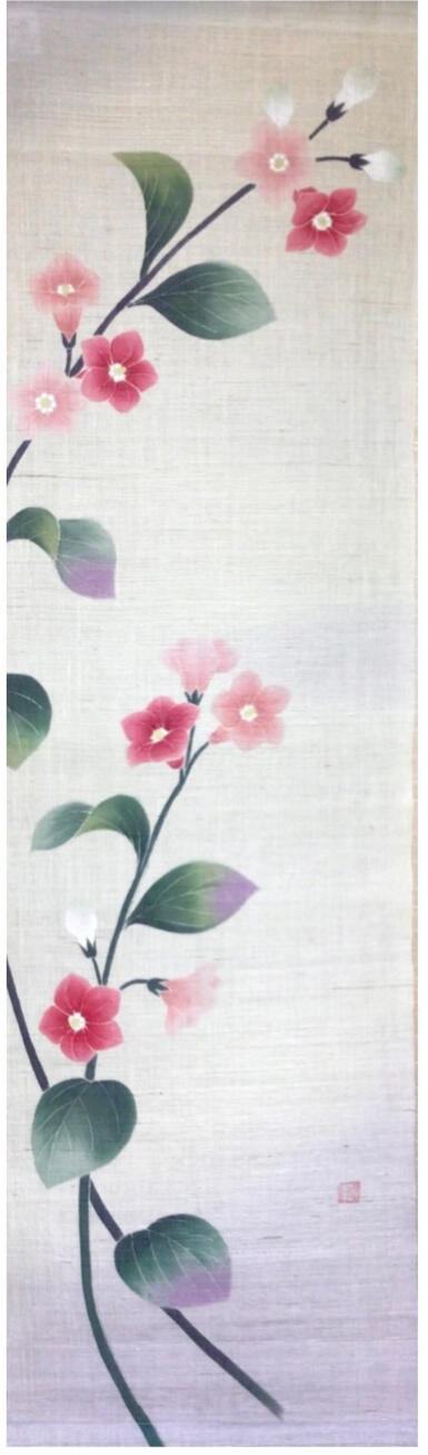 染色技法の一つ手描き友禅でタペストリー、暖簾を制作しています。四季折々の花や鳥を描いたインテリアとしての友禅をお楽しみください。